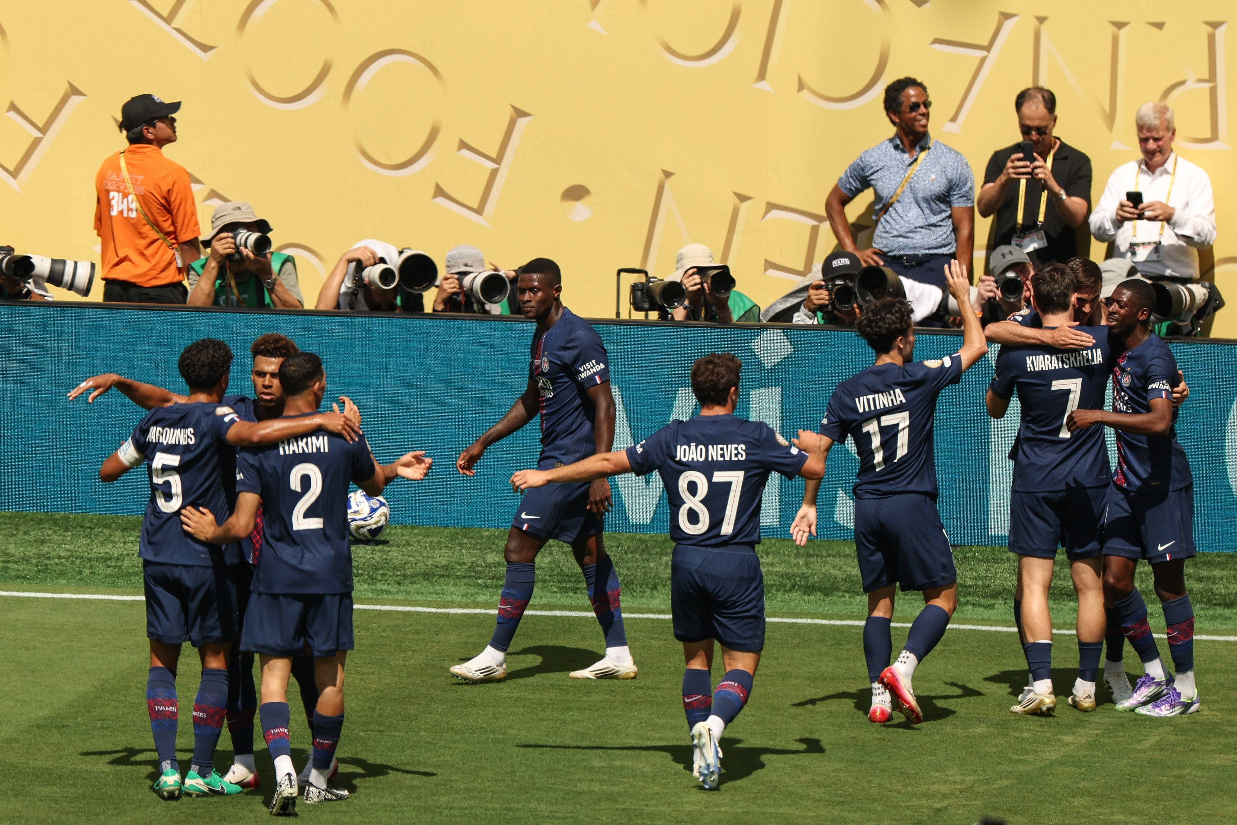 若大巴黎能够欢庆世俱杯的夺冠,他们将在2025年前获得五个重要赛事的冠军。不过,这还不是结束:8月的欧洲超级杯以及12月的第二届洲际杯也在等待着他们。这意味着大巴黎在2025年可能最多将收获7座冠军奖杯。值得一提的是,球队中四名葡萄牙球员 - 维蒂尼亚、努诺-门德斯、若昂-内维斯、贡萨洛-拉莫斯,本赛季有机会争夺多达八项冠军,而在6月他们就已随葡萄牙队赢得欧国联冠军金杯,前景令人期待。